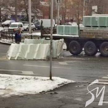 У важкий день понеділок, 26 листопада, «на кругу», тобто перехресті з круговим рухом проспекта Перемоги і вул. Мазепи вантажівка загубила пачку-дві гіпсокартону.