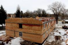 Як розповідає керівник будівництва Володимир Вікторович, до гуртожитків уже підвели водопровід та каналізацію, зробили внутрішню розводку кімнатами, будівлі з’єднали з котельнею.