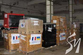 До Чернігова прибув гуманітарний вантаж із Франції, до якого увійшли генератори, будівельні матеріали, планшети та інші необхідні нині речі.