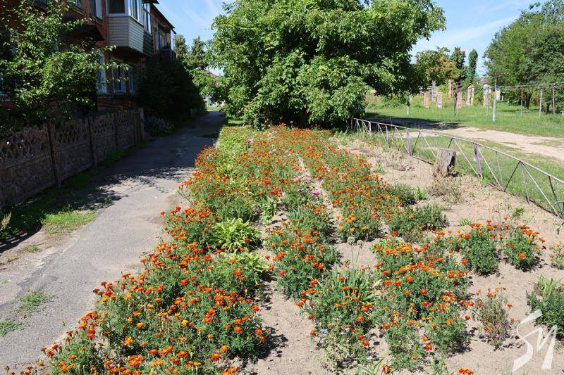 … Зараз жителька будинку розповіла, що це чорнобривцеве поле вони висадили утрьох. Вирішили так. Бо це закладено у наших генах. Бо квіти садять не тільки для когось. Головне – для себе.