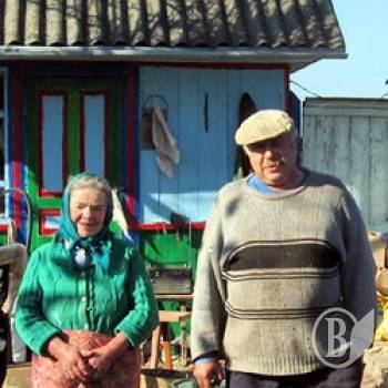 На фото: Є.І. Рекун та І.П. Жабинець на новому обійсті