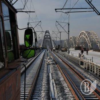 Юго-Западная железная дорога завершает строительство железнодорожной составляющей железнодорожно-автомобильного мостового перехода в г.Киеве. Уже проложены обе колеи по мосту, проводится электрификация.