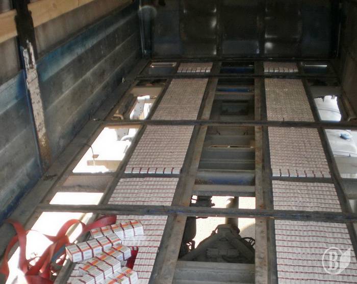 Під час огляду спільною групою у складі співробітників Чернігівської митниці та прикордонного загону у конструктивних порожнинах автомобіля було виявлено 15359 пачок цигарок. Дістатись до цигарок стало можливим після зняття підлоги вантажівки.