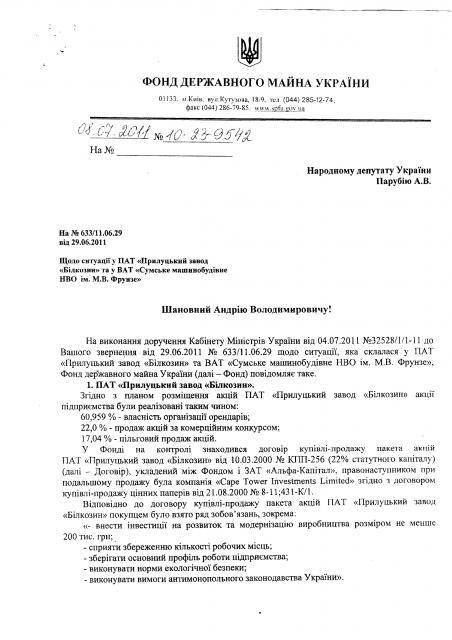 Ще в часи Леоніда Кучми, прибуткове підприємство було передано російській фінансовій групі, яка має у власності другий подібний заводі в СНД - Лужський завод «Білкозин», котрою керує людина якою нині активно цікавляться російські правоохоронні органи Барсуков (Кумарин) – «нічний губернатор Петербурга».