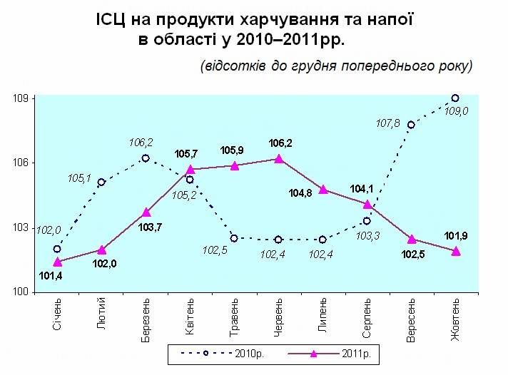 На споживчому ринку області в жовтні 2011р. ціни на продукти харчування та напої знизилися на 0,5%.