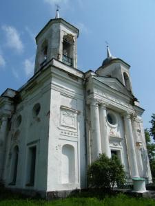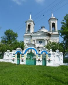 Успенська церква у Вишеньках освячена 1787 року. Храм зведений у ті ж часи, що й палац. І наразі споруди в однаково плачевному стані. На покрівлі церкви вже й кущі ростуть. «Що там фотографувати - така обшарпана...» - озивається бабуся, проходячи повз мене.