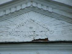 Втім, незважаючи на загальну «розруху», над головним входом до храму добре збереглася символіка: сяюча дельта із «всевидючим оком» усередині. Таку саму можна побачити на багатьох пам'ятках архітектури в російському Петербурзі. А ще - і на таких дорогих нашим олігархам доларах (на українській банкноті номіналом 500 гривень, до речі, також). Мабуть, не лише графом був Петро Рум'янцев-Задунайський...