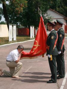 П’ять командирів 30-го окремого Криворізького орденів Богдана Хмельницького ІІ ступеню, Червоної Зірки, Захисту Вітчизни ІІІ ступеню Румунської Народної Республіки лінійно-вузлового полку зв’язку, які командували військовою частиною в різні роки, по черзі опускалися на коліно і цілували стяг.