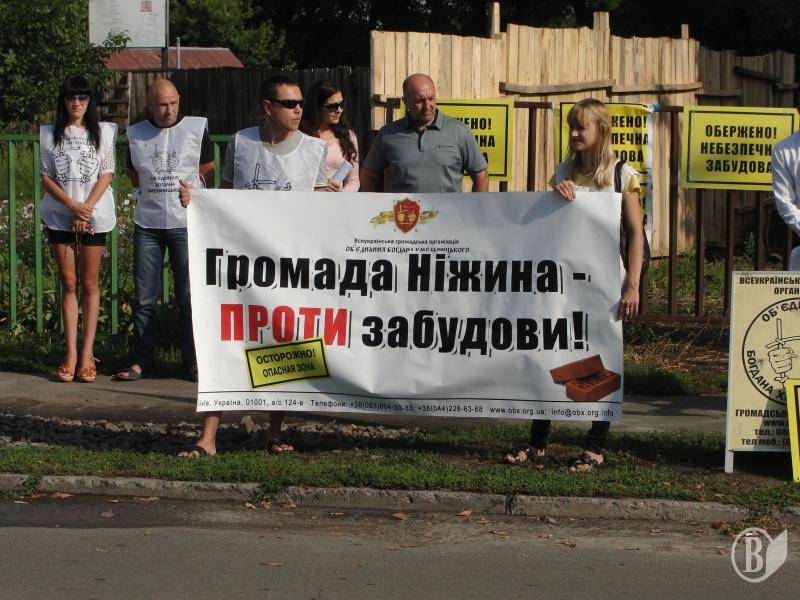 Активісти Ніжина, які вийшли на вулицю, вимагають зупинити незаконну забудову. Мітингувальники вимагають у місцевої влади захисту інтересів громади, а не фінансових інтересів «депутатів-бізнесменів».