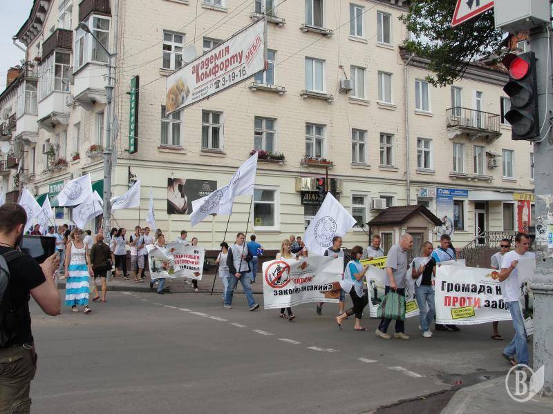 Активісти вийшли на вулицю, щоб зупинити будівництво, та звернути увагу громадськості, що попередні звернення до прокуратури та міліції не дали результатів.