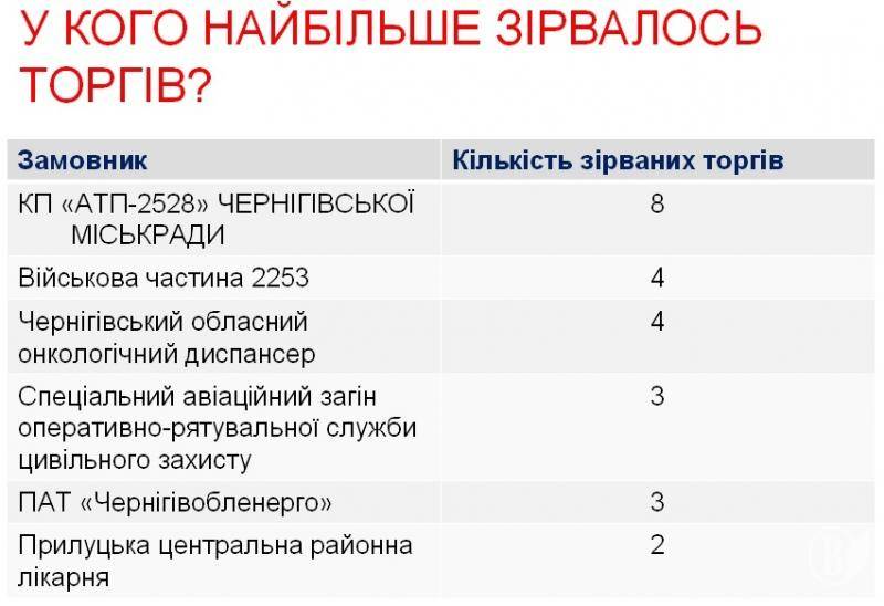 Прикметно, що провал державних закупівель на Чернігівщині стає трендом. В 2013 році за такий самий період зірвалось 59 торгів.