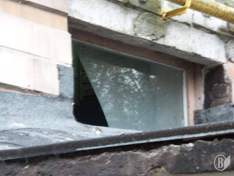 Цей будинок на вулиці Попудренка , 29 у Чернігові нічим відрізняється від Донбасу. Його „обстріляли” самі жильці. Вікна розбиті.
