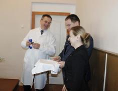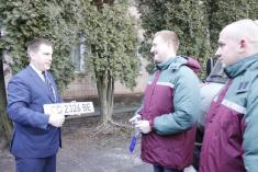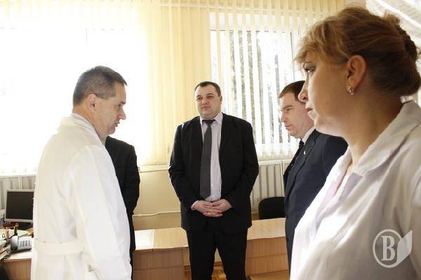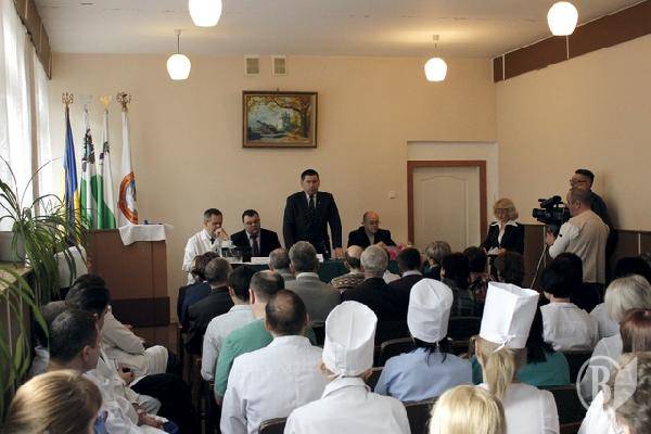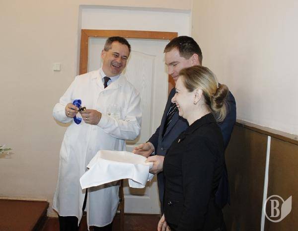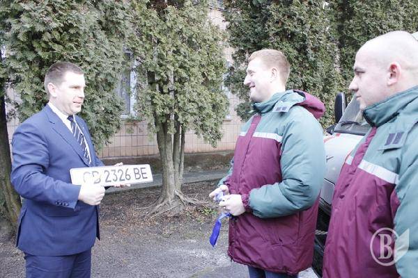 По завершенню урочистої частини, біля новенького санітарного автомобіля, що стояв на подвір’ї лікарні, в.о голови облдержадміністрації вручив водіям номерні знаки та оглянув транспортний засіб.