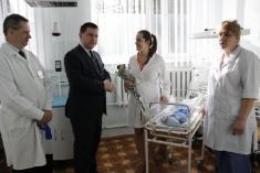 Користуючись нагодою, Сергій Журман ознайомився з роботою пологового відділення районної лікарні та привітав з народженням сина молоду маму із с. Брусилів. Він побажав, щоб малюк зростав здоровий і радував батьків.