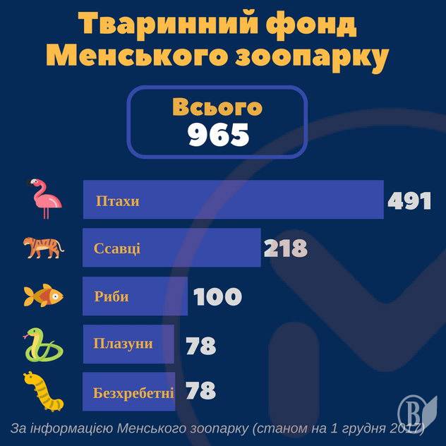 – На сьогоднішній день у зоопарку проживає майже тисяча тварин, якщо точно – 965. Переважна більшість – це птахи 491, далі за кількістю ідуть ссавці – 218, риби – 100, плазуни та безхребетні – по 78. 30 видів тварин, що є у нас, занесені до Міжнародної Червоної книги. Ну а якщо трохи порівняти, то, наприклад, у 2000 році, коли я очолила зоопарк, тут всього налічувалося 320 голів.