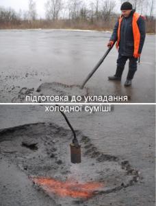 В умовах зими аварійний ямковий ремонт холодними асфальтобетонними сумішами виконується за технологією, яка дозволяє проводити ремонт навіть при зниженні температури повітря до від’ємних відміток, і проводиться для захисту дорожнього покриття від подальшого руйнування.