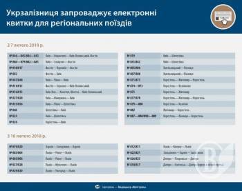 З 7 та з 10 лютого через інтернет можна придбати квитки на більшість регіональних поїздів (800-ї нумерації) з оформленням електронного проїзного документа. Його не потрібно обмінювати у залізничних касах на звичайні.
