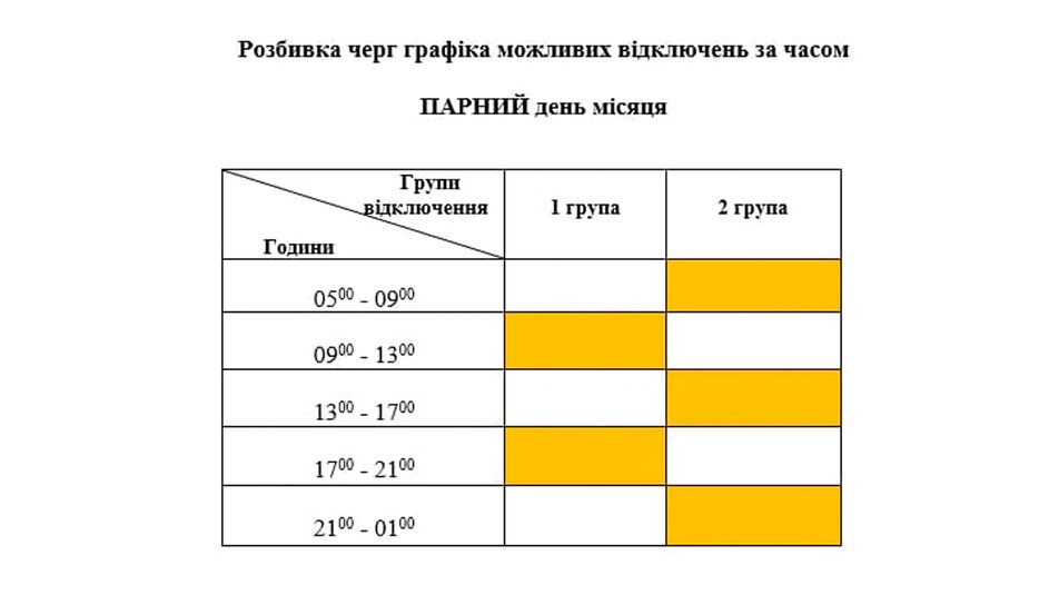 У парний день місяця відключення застосовуватимуться дзеркально: