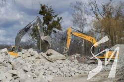 Демонтаж зруйнованих багатоповерхівок почали 23 січня 2023 року. За вісім тижнів 20 працівників будівельної компанії розібрали й переробили всі чотири будинки. Розбирали вручну й за допомогою техніки, кранів. Із чотирьох будинків вийшло 15 тис. тонн будівельного сміття.
