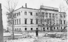 — зруйнована будівля старого пивзаводу на вулиці Київській після війни, де асобоз косив траву;