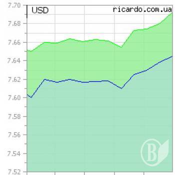 Столичні комерційні банки купують долари в середньому по 7,65 грн./дол., продають – по 7,69 грн./дол. (курси купівлі/продажу підвищилися на 0,4% за тиждень).