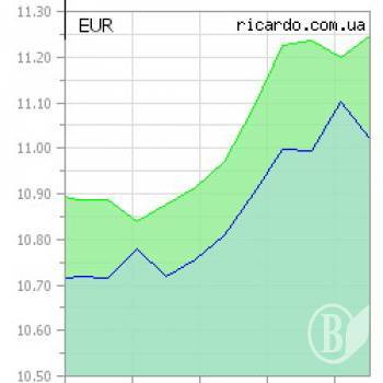 Ринок євро-гривня відкрився наступними індикативними котируваннями – 11,0520/11,0950, до 12:00 ціни підвищилися до 11,1025/11,1365.