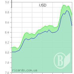 Сегодня на межбанковском валютном рынке Украины торги долларом США открыты котировками 8,6225/8,6765 грн./дол., на 12:00 цены обрушились – 8,4220/8,4680 грн./дол.