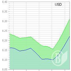 Пропозиції комерційних банків щодо купівлі долара коливаються в межах 8,13-8,25 грн./дол., з продажу – в межах 8,25-8,35 грн./дол.