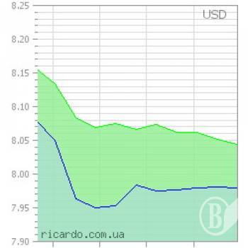 Предложения коммерческих банков по покупке доллара находятся в пределах 7,95-8,00 грн./дол., по продаже – в пределах 8,02-8,10 грн./дол.