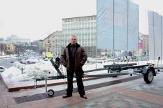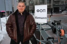 Перед входом в Украинский дом посетителей встречал автоприцеп для перевозки лодок. Это продукция черниговского предпринимателя Оксаны Кияшко.