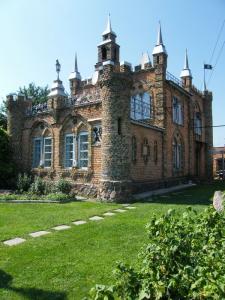 У селі Дмитрівка Бахмацького району стоїть невеличкий цегляний замок. Все, як годиться: башти, парапет, кам’яний фундамент, арки над вікнами й дверима, в небо дивляться гострі шпилі, а на подвір’ї – рівний зелений газон.