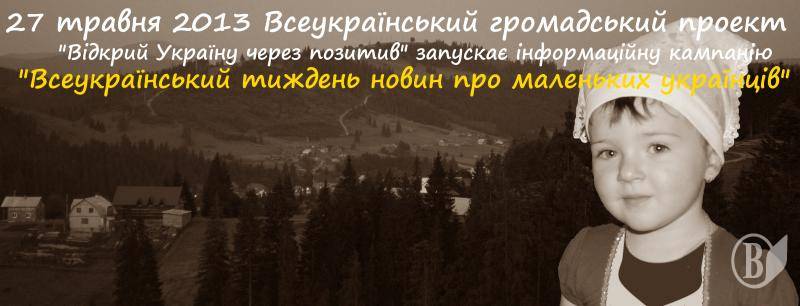 Всеукраїнський громадський проект «Відкрий Україну через позитив» 27 травня запускає інформаційну кампанію «Всеукраїнський тиждень новин про маленьких українців», присвячену Міжнародному дню захисту дітей 1 червня.