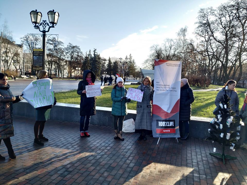 Вчора, 19 грудня, чернігівці разом з активістами БО "Чернігівська МЕРЕЖА" підтримали Всеукраїнську акцію "Чорна ялинка" метою якої є привернути увагу до проблеми можливого переривання постачання АРТ-препаратів державою.