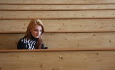 Про це думалось, коли студентки Чернігівського педагогічного університету займалися невідкладними справами (на фото) в очікуванні пари.
