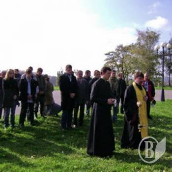 Возле Камня «Борцам за волю Украины» черниговские националисты провели торжественные собрания и помолились за всех тех, кто пролил свою красную горячую кровь на святой украинский чернозём: Красный и Черный – это цвета флага украинских националистов.