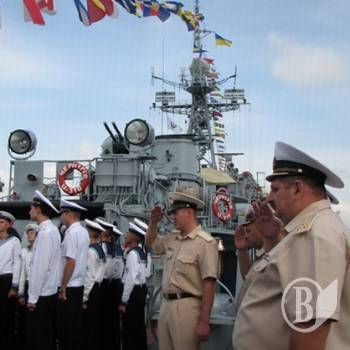 Делегация в составе начальника управления инвестиций и туризма Черниговского горсовета Владимира Бурдова и начальника отдела по вопросам деятельности правоохранительных органов Валерия Селивона приняла участие в торжествах по случаю 35-й годовщины поднятия на тральщике"Чернигов"военно-морского флага.