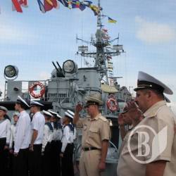 Делегация в составе начальника управления инвестиций и туризма Черниговского горсовета Владимира Бурдова и начальника отдела по вопросам деятельности правоохранительных органов Валерия Селивона приняла участие в торжествах по случаю 35-й годовщины поднятия на тральщике"Чернигов"военно-морского флага.