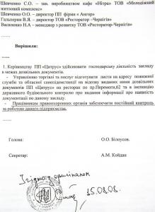 «Згідно акту державної приймальної комісії про прийняття закінченого будівництвом об’єкту, дане приміщення було прийняте як їдальня, відповідно до чинних архітектурно-будівельних норм, воно не підходить для розміщення в ньому ресторану і потребує зміни функціонального призначення.»