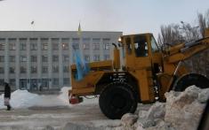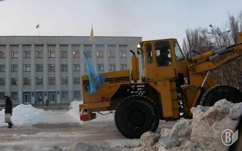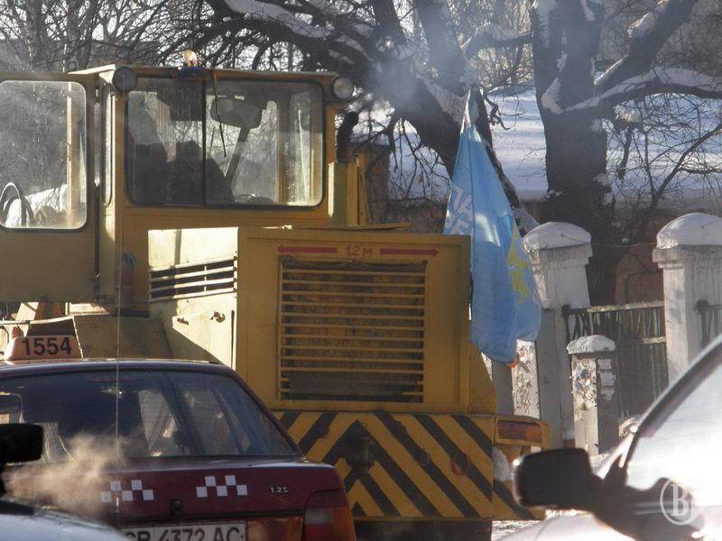 Черніговом «розсікає» трактор з прапором Партії регіонів України. Цей трактор і раніше прибирав сніг у Чернігові, але зараз – під прапором.