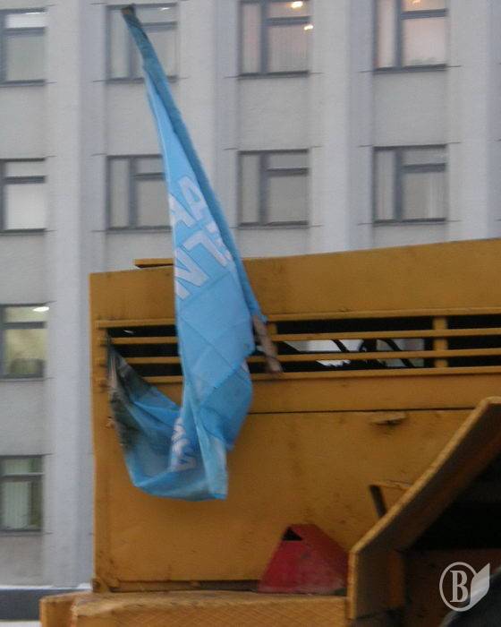 Втім, появі прапора на тракторі є певні аналогії. Навесні 2009 року працівники ЖКГ виходили на загальноміський суботник під прапорами «Єдиного центру». Вадим Антошин за сумісництвом (Ви тільки подумайте, яка неймовірно працьовита людина!) – голова Деснянської районної організації Єдиного Центру. Принаймні, був таким на той час.
