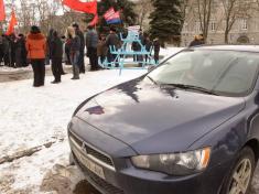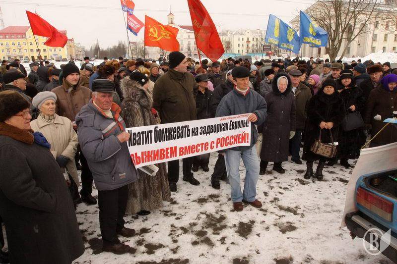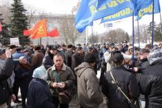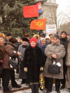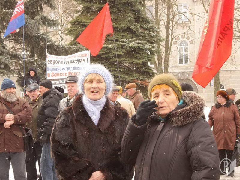 Депутат міськради Іван Донець розпочав мітинг словами про те, що вони (комуністи і прогресивні соціалісти) задоволені, що президентом України став Віктор Янукович. Та все ж «… ми нагадаємо Януковичу про необхідність економічного союзу з Росією і Білоруссю».