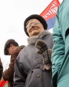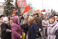 Та ностальгія за «єдіним і нєрушимим» у декого залишилась. Ці люди й зібралися сьогодні на Красній площі під прапорами КПУ і ПСПУ.