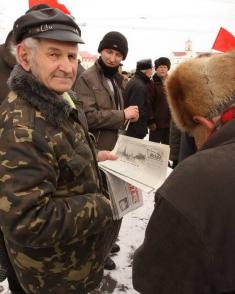 А поки зачитувався текст резолюції, поблизу імпровізованої трибуни чотири бабусі «комуністичного віку», розмахуючи руками і вигукуючи прокльони, виштовхували з натовпу одного з колишніх «помаранчевих», який особисто щось хотів заперечити вождям мітингу…