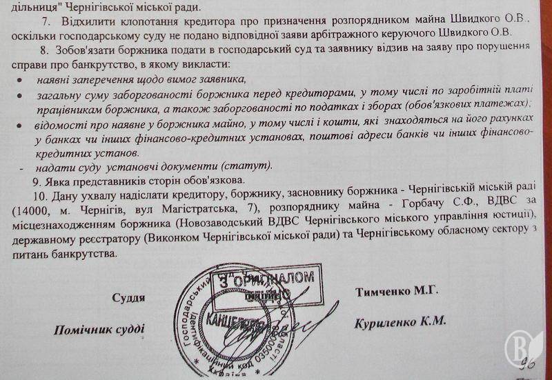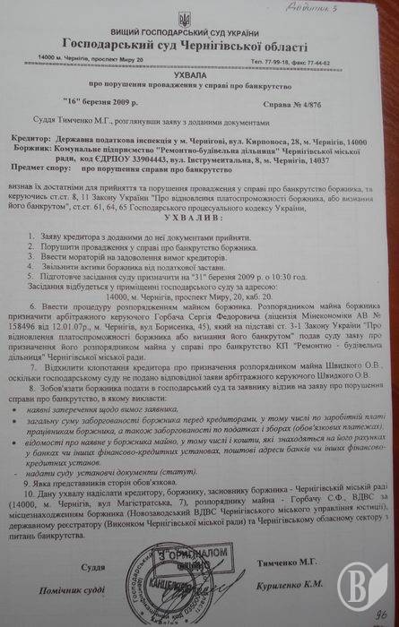Приводом для порушення даної справи стала заборгованість даного підприємства перед ДПІ у м. Чернігів на суму 1,8 млн.грн. Сума начебто значна, однак проти 600 мільйонів грн. щорічного міського бюджету – капля в морі.
