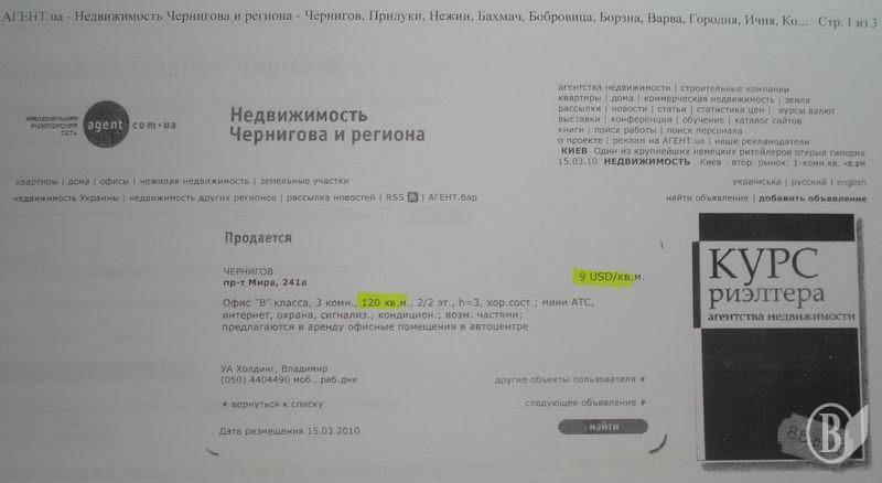 За таких умов, таке офісне приміщення в центрі Чернігова мало б коштувати (увага!) 1080 (одну тисячу вісімдесят) доларів США.