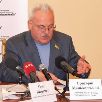Наприкінці прес-конференції керівник обласного осередку Партії регіонів Григорій Маньковський звучив заяву обласної організації Партії регіонів.