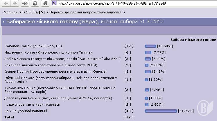 По крайней мере именно таким оказался результат виртуального голосования на одном из черниговских интернет-форумов.
