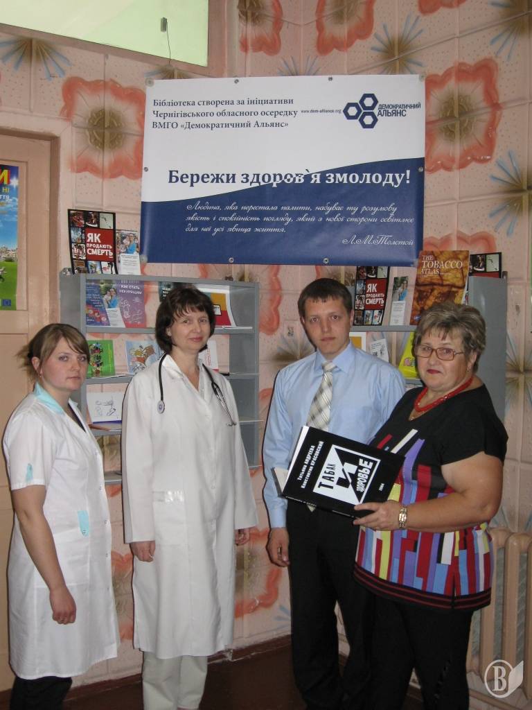 26 травня члени та активісти ЧОО ВМГО «Демократичний Альянс» разом із головним лікарем дитячої поліклініки №2 Анною Якубовою, відкрили бібліотеку здоров’я у “Клініці дружній до молоді”. Бібліотека відкрита до Міжнародного дня боротьби з тютюнопалінням, який відзначається 31 травня.