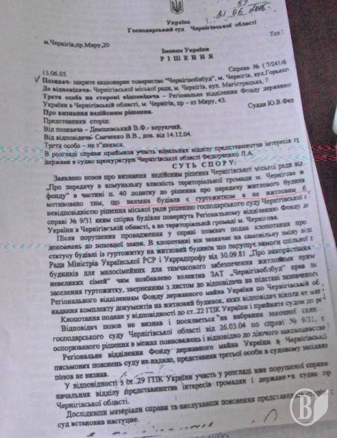 Спочатку боролись, щоб будинок передали на баланс міста. Так можна приватизувати. І у 2004 році його передали. Але у нас проблеми з власником. Будинок офіційно належав «Чернігівоблбуд» . Його директор Віктор Демшевський не передавав нам документів. А у 2007 році він подав апеляцію на основі ново виявлених фактів. Виявляється – це не жилий будинок з квартирами, а гуртожиток! У нього за документами навіть підписи не сходяться. І для судів він завжди надавав лише копії. Але на основі цих документів будинок знову належить йому, - розповіла Параскева Россол.