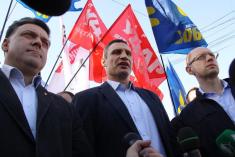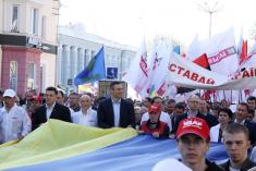 Колона з лідерами опозиції після невеличкої прес-конференції біля "Мегацентру" рушила проспектом Миру до центральної площі і розпочала акцію "Вставай, Україно!".